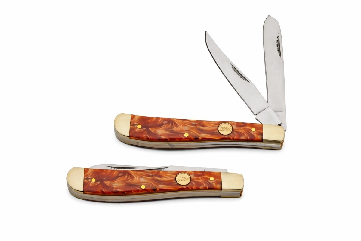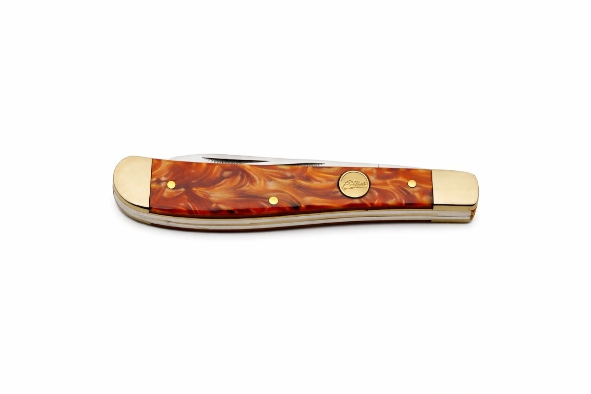 The REDCLAY TRAPPER is built on a foundation of quality and durability. Each blade is precision-constructed from 3Cr13 stainless steel, featuring a stunning mirror finish that not only resists corrosion but also maintains a sleek, professional appearance over time. The handle scales are crafted from striking brown swirl acrylic, offering a unique, high-end look that is matched by a comfortable, ergonomic feel in the hand. To ensure lasting structural integrity, the knife is finished with polished nickel silver bolsters, adding a touch of traditional vintage elegance to the overall build.
