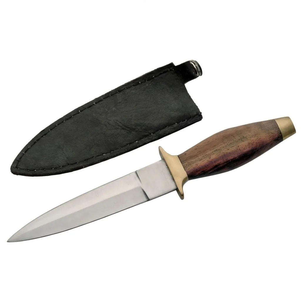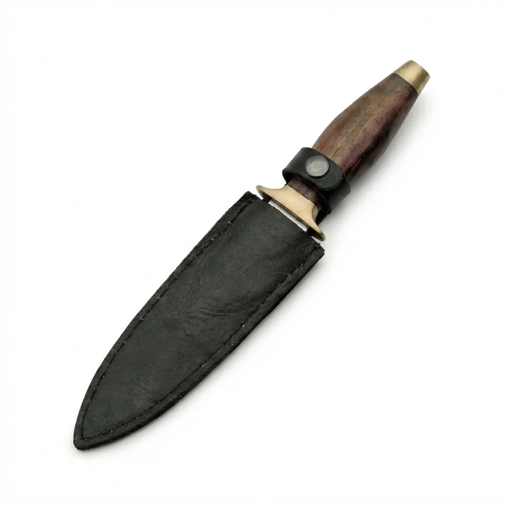 The 9-inch Classic Boot Knife is a compact, double-edge fixed blade designed for dependable everyday carry and collection use. Featuring a balanced profile, polished brass guard, and contoured wood handle, this boot knife delivers controlled handling and a traditional aesthetic. Offering dependable performance as part of our Fixed Blade Knives collection, it is built for those navigating demanding outdoor environments while remaining suitable for lawful outdoor and utility use