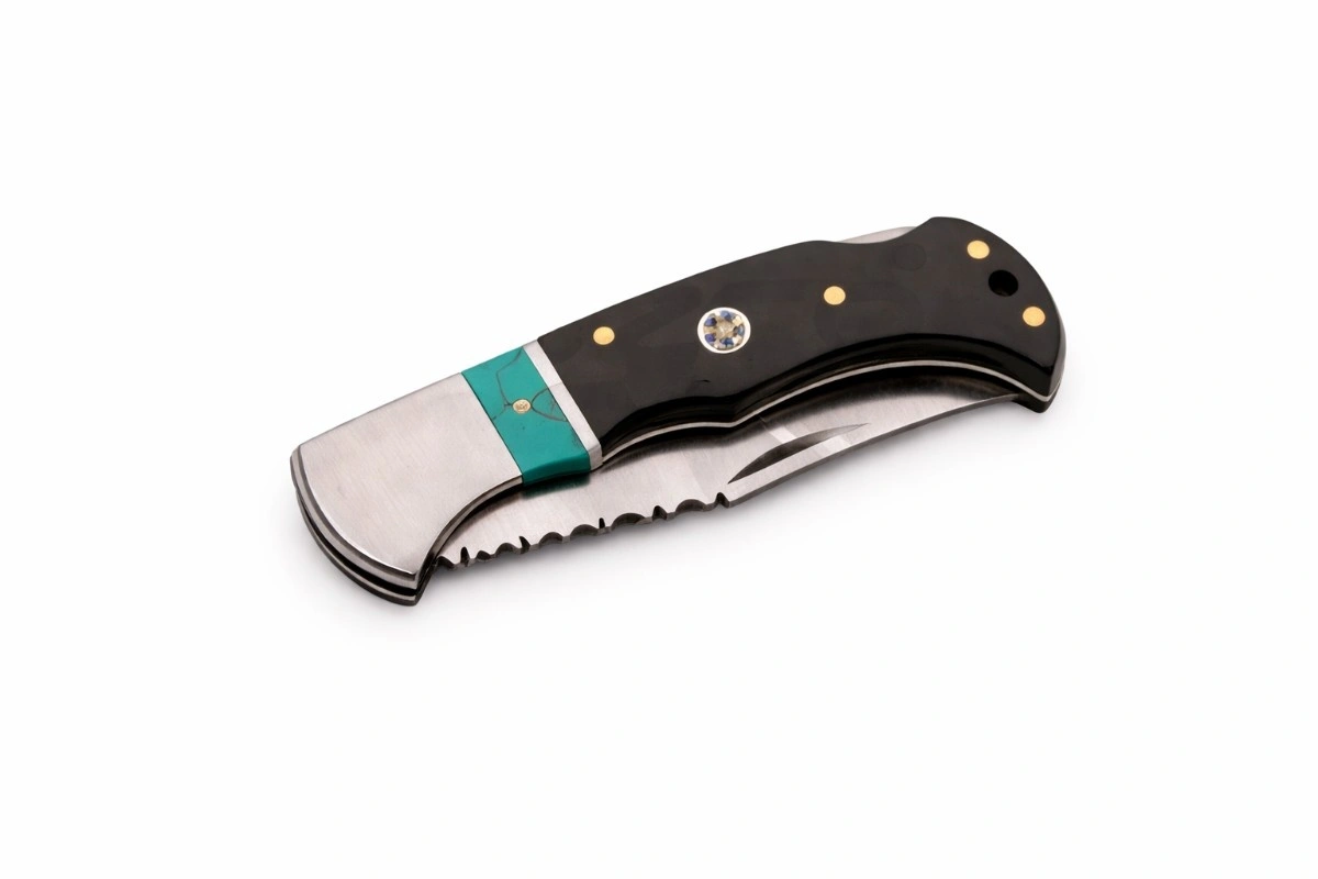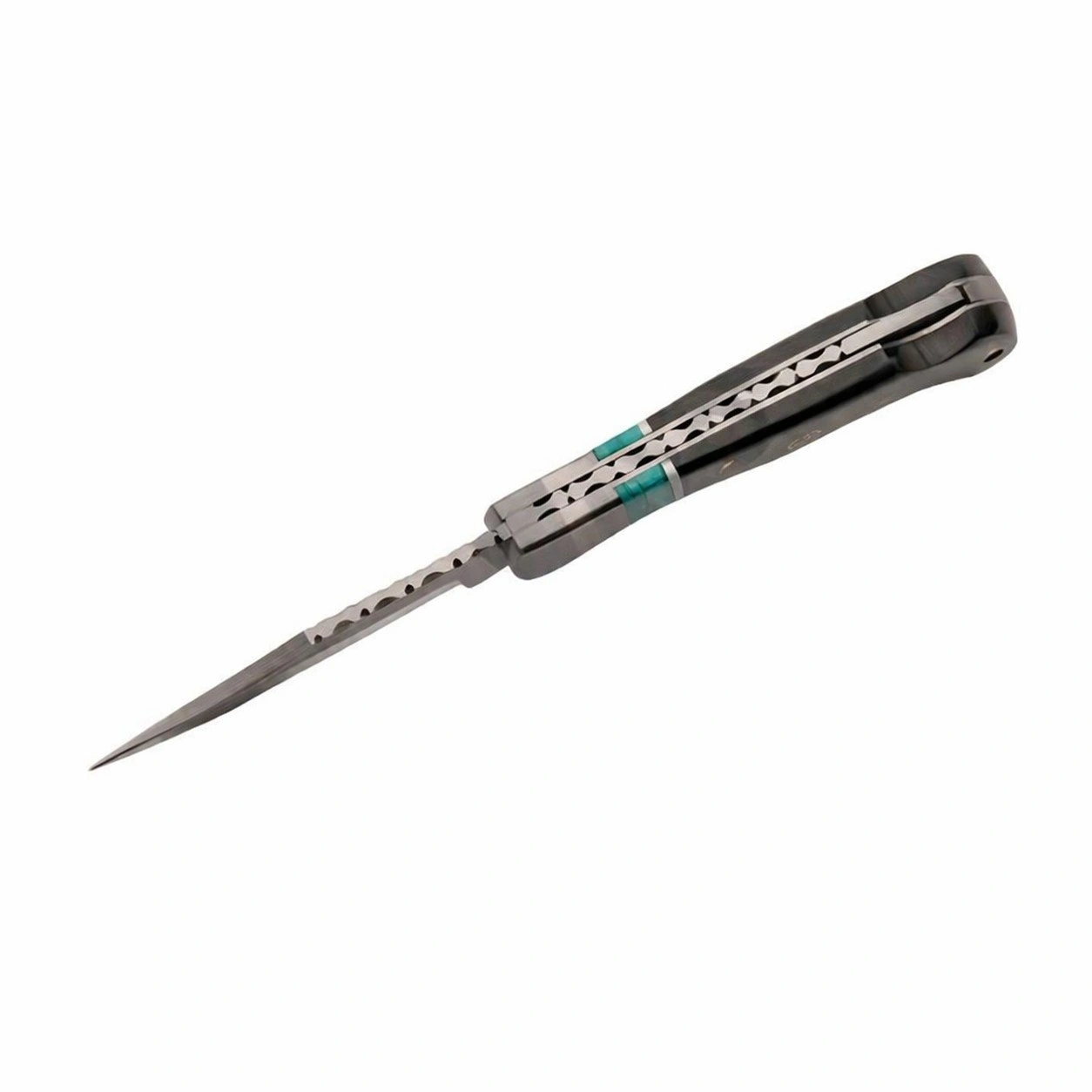 The Horn & Turquoise Folder is a distinguished stainless steel folding knife engineered for reliable performance and visual excellence. Compact yet capable, this blade serves as a versatile companion for daily tasks while maintaining the high standards expected of a heritage-grade collectible.