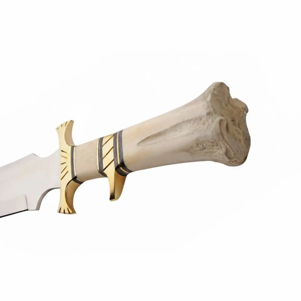 The Brass Camel Bone Bowie is a masterclass in classic American blade design. Measuring a substantial 16 inches overall, this fixed-blade powerhouse is engineered for those who demand a heavy-duty tool that performs as well in the rugged backcountry as it looks in a glass display case. Combining a 10-inch high-polish stainless steel blade with a handcrafted 6-inch camel bone handle, this knife offers the perfect balance of frontier aesthetics and modern durability.