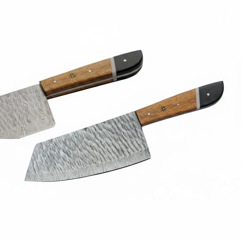 Hand-Forged Damascus: High-performance steel with unique wavy patterning for superior cutting power.