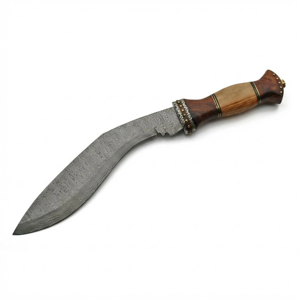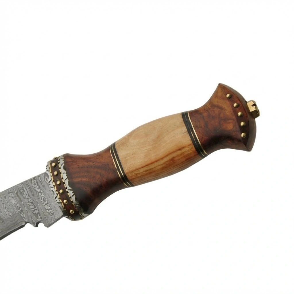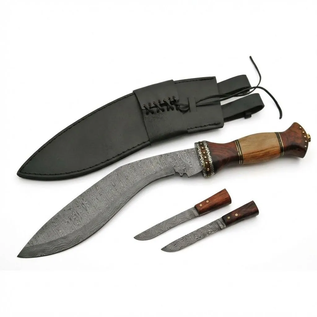 18″ Damascus Kukri Knife with Olivewood Handle & Accessory Blades