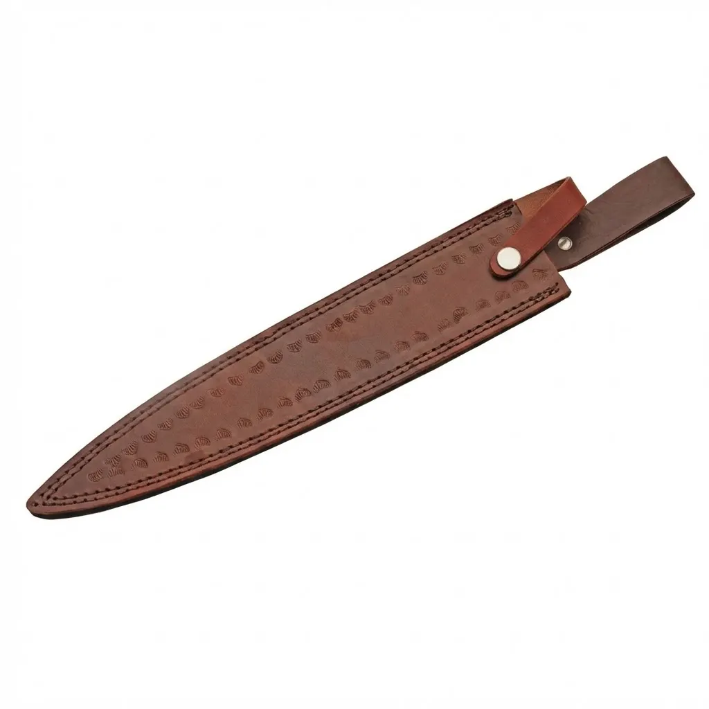 The centerpiece of this exceptional collector’s piece is its Damascus steel spear point blade. Hand-forged through an intricate process of welding and folding multiple layers of steel, this blade offers a “watery” ripple pattern that is unique to every single knife. At a substantial 12 inches, the blade is designed for those who appreciate the weight and presence of a full-sized fixed blade.