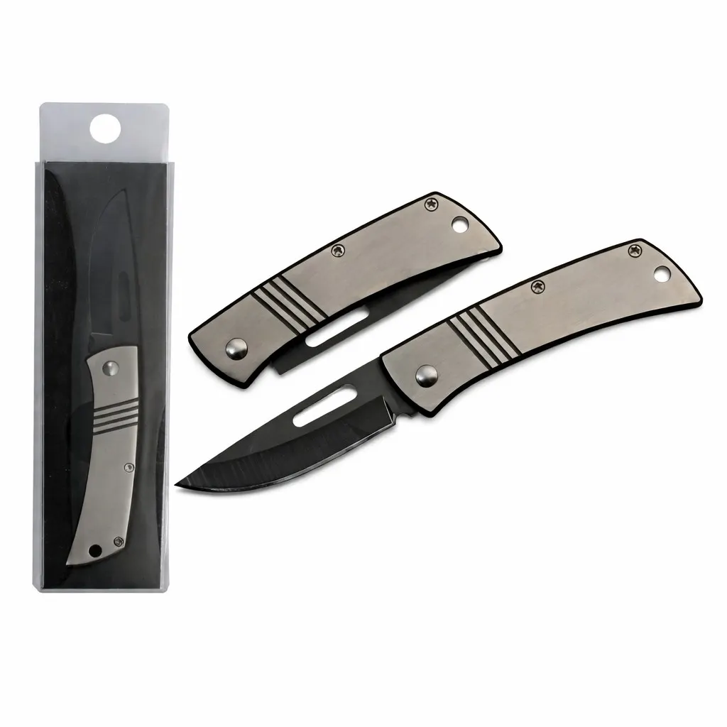 The Engravable Black Blade Folder is a minimalist pocket tool built for clean lines and functional performance. This folding knife is specifically engineered with a flat-profile stainless steel handle, providing a premium canvas for custom printing or laser engraving, making it a standout choice for personalized gifts or corporate hardware.