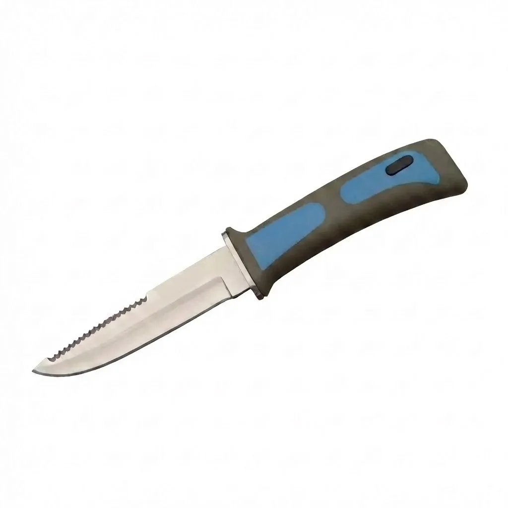 The core of this 9-inch hunting knife is a high-grade Stainless Steel blade, specifically engineered to offer superior corrosion resistance and edge retention. Whether you are navigating marshy hunting grounds or diving in harsh saltwater environments, the blade is treated to remain rust-free and durable. Complementing the blade is a high-impact resin composite handle in a high-visibility blue and grey color scheme. The ergonomic design provides a rock-solid, non-slip grip even when your hands are wet or covered in neoprene gloves, ensuring the safety and precision required of a high-performance hunting knife.