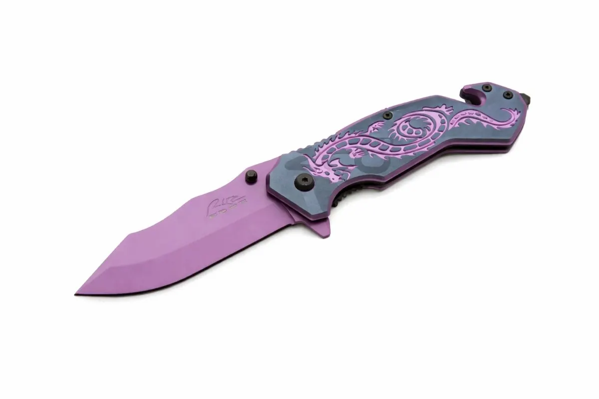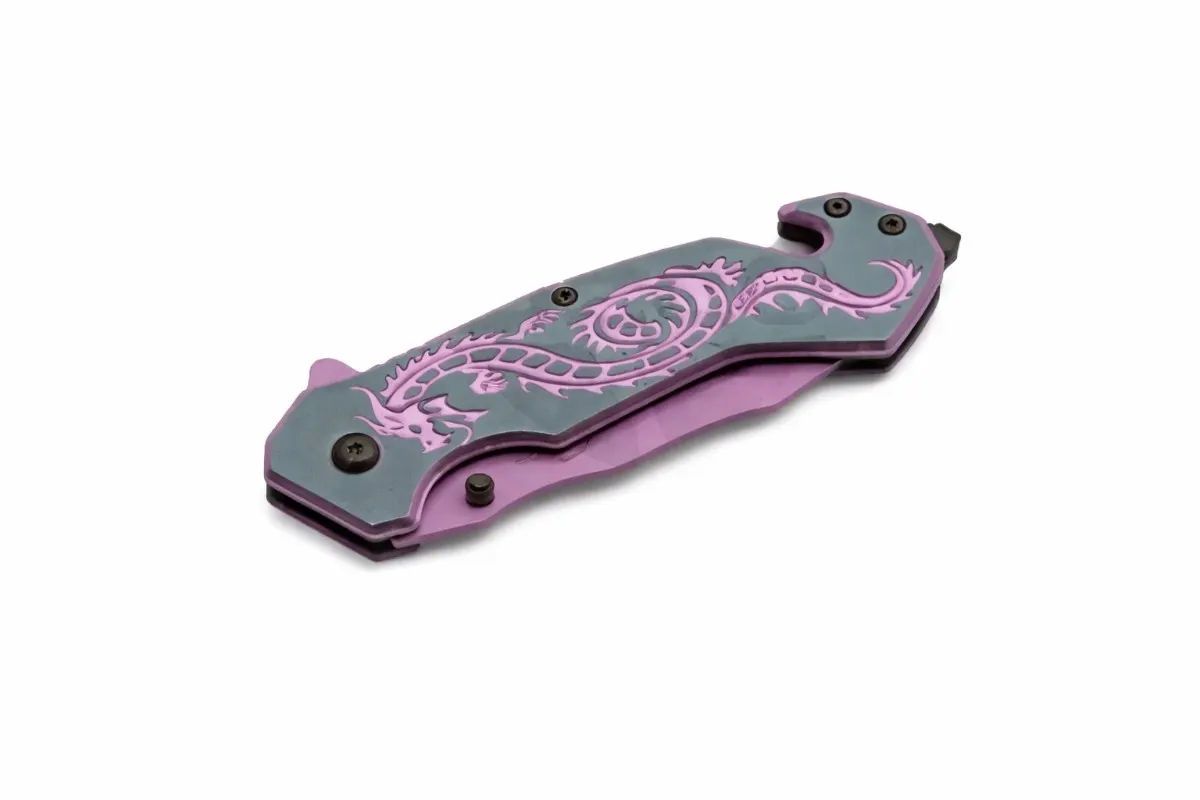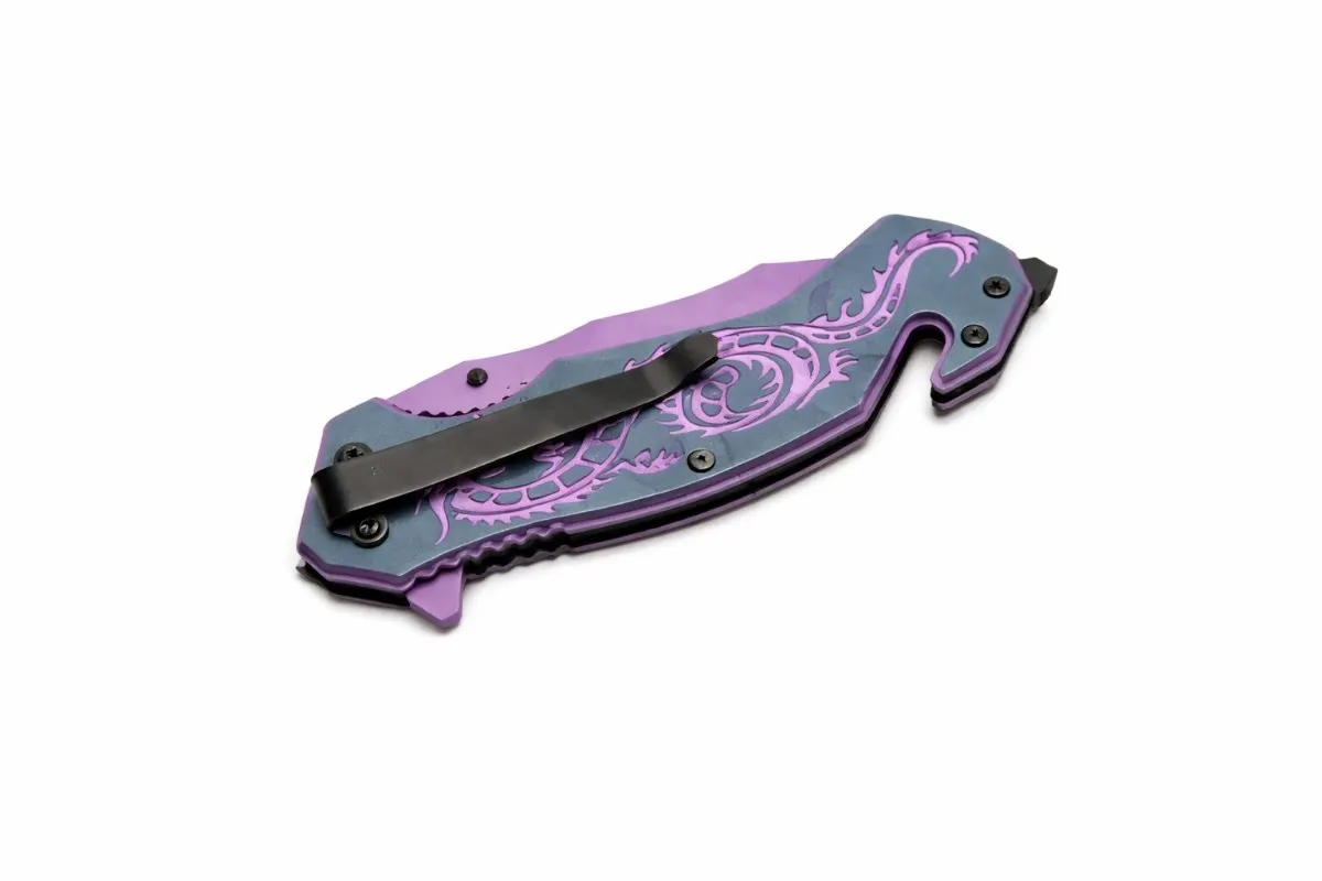 4.5″ Purple Flying Dragon Rescue Stainless Steel Folding Knife – Tactical Emergency Liner Lock