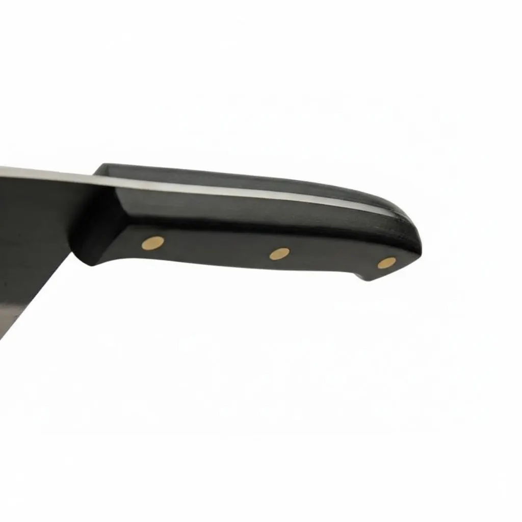 The distinctive curved profile of the Serbian Cleaver allows for a rocking motion that excels at mincing and dicing, while the wide blade face serves as a convenient scoop for transferring ingredients. The full tang design distributes weight evenly across the 5.5-inch handle, offering a balanced feel during extended use.