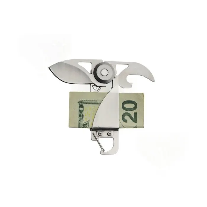 This versatile stainless steel folding knife is a precision-engineered multi-tool designed for seamless everyday carry. Combining a sharp stainless steel blade with a functional money clip and bottle opener, it serves as a sophisticated utility piece for the modern minimalist.