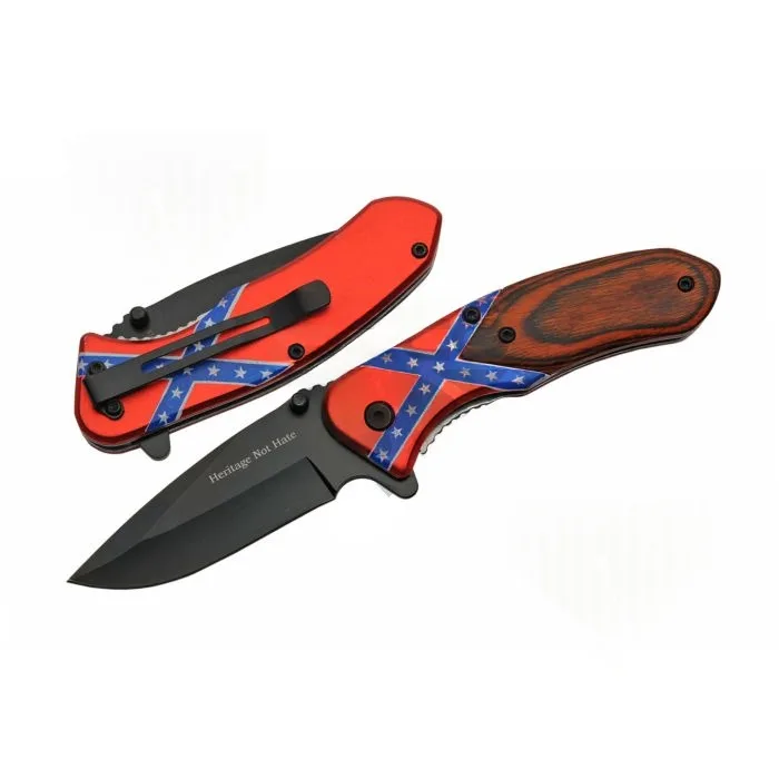 Dixie Rebel Stainless Steel Folding Knife – Heritage Wood Edition
