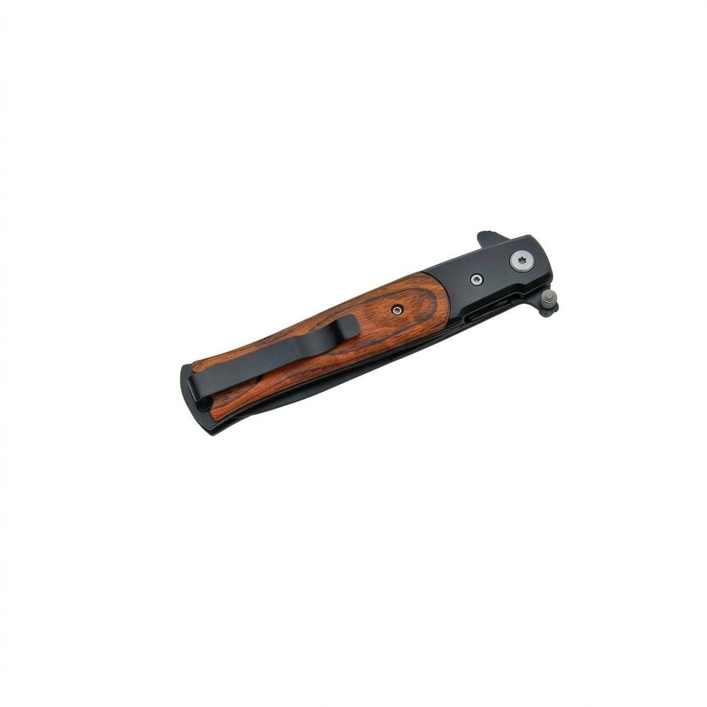 The wood stiletto folding pocket knife is a contemporary tribute to a legendary silhouette, blending the sleek profile of a traditional stiletto with the rugged utility required by modern owners. Built with a focus on symmetry and balance, this knife offers a slim carry profile without compromising on the reach or piercing capability of its five-inch closed frame.